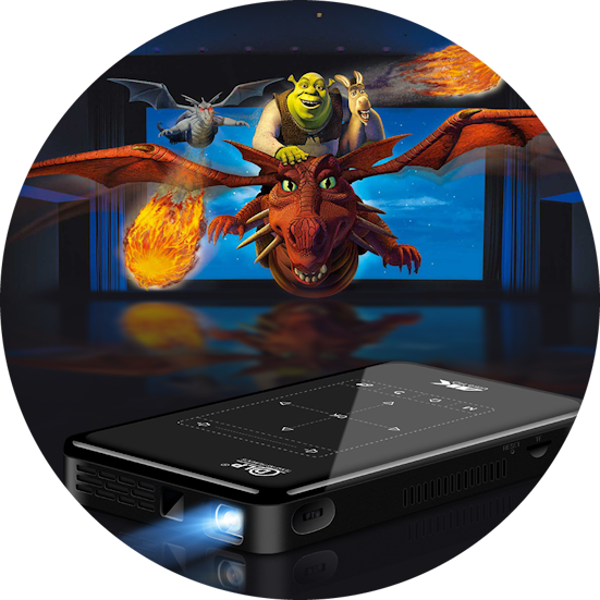 High Quality HD Smart Mini DLP Portable Pocket Projector with WiFi, Bluetooth, 3D Capability and an Android Operating System. From your Flash Drive, Smartphone, Laptop, Tablet or A/V Device to the Big Screen, Anywhere, Anytime.